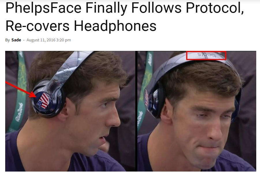 A photo emerged of everyone’s favorite swimmer, Michael Phelps aka PhelpsFace, donning Beats headphones at the Olympics.