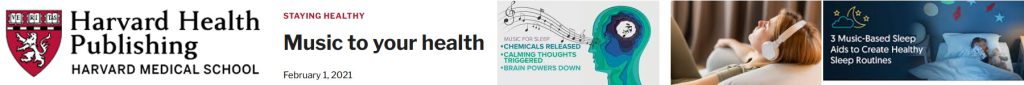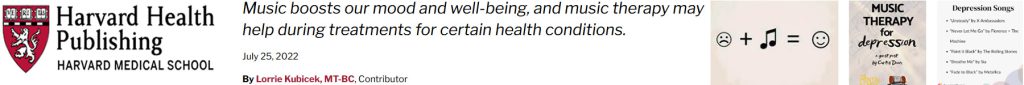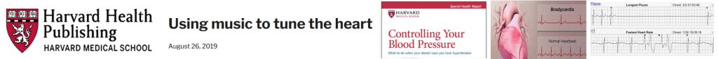 In the article “Using Music to Tune the Heart” published by Harvard Health Publishing on Au 26, 2019 the author observed tremendous impact on heart disease patients. For example: At Massachusetts General Hospital, a nurse-led team found that heart patients confined to bed who listened to music for 30 minutes had lower blood pressure, slower heart rates, and less distress than those who didn’t listen to music. Another nurse-led team at the University of Wisconsin-Milwaukee found that heart attack survivors who listened to restful music in a quiet environment for just 20 minutes were less anxious about their health than those who rested in a quiet room without music. At Abbott Northwestern Hospital in Minneapolis, men and women who listened to music soon after undergoing cardiac surgery were less anxious and reported having less pain than those who just rested quietly.